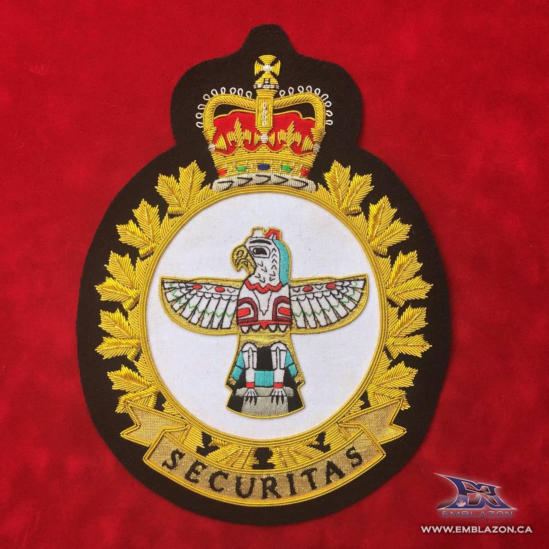 Canadian Forces Military Police This Canadian Forces Military Police crest is made from the highest quality melton wool fabric that is hand stitched using the finest gold bullion wire and silk threads. This is the large , 12” version of the Canadian Forces Military Police Size – 12” (305 mm) Tall.