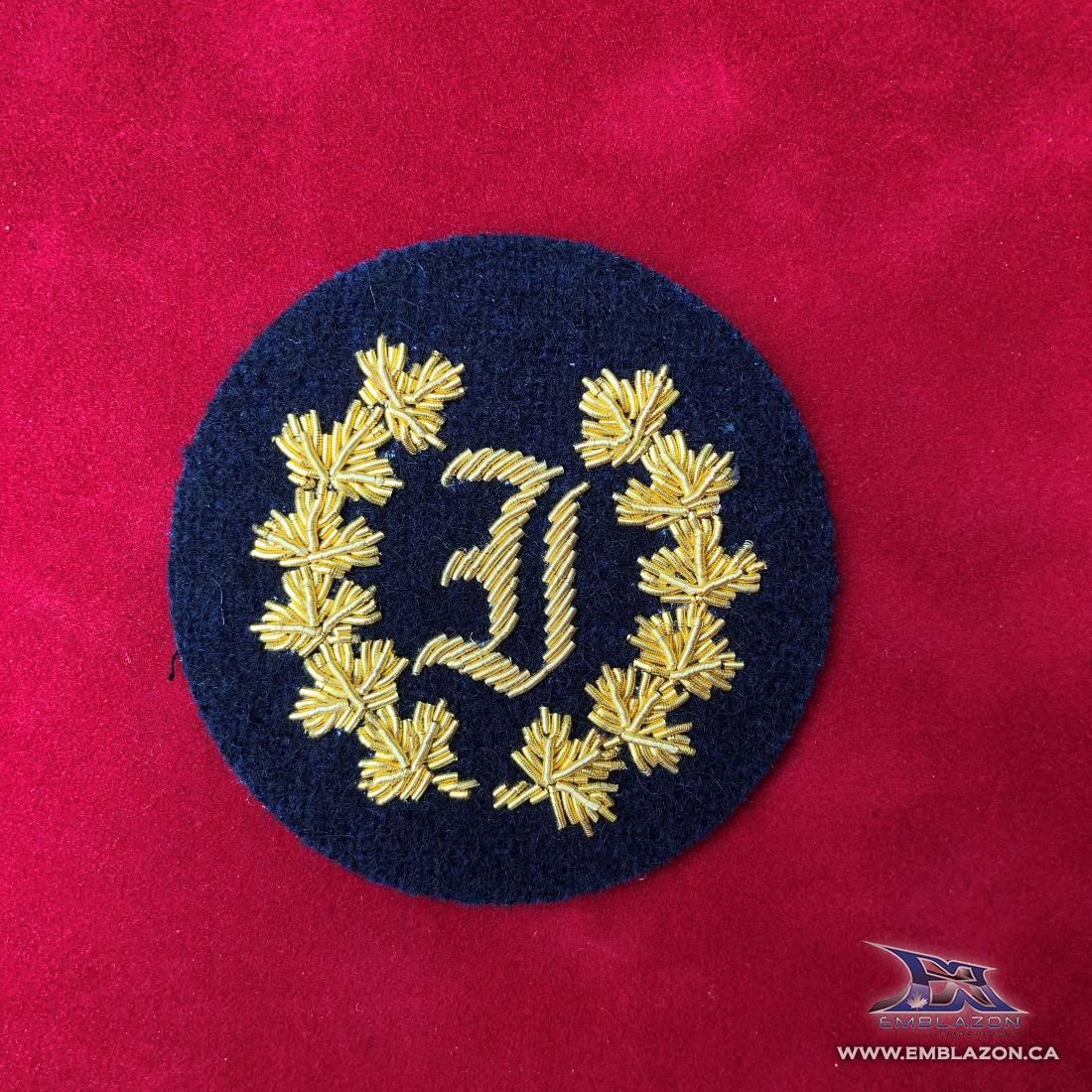 Academic Instructor This Academic Instructor appointment badge is made from the highest quality melton wool fabric that is hand stitched using the finest gold bullion wire. Size – 2” (50 mm) Diameter. Also available in gold on red and silver on blue melton wool.